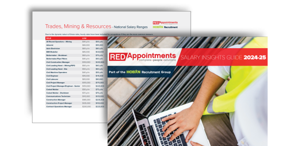 As part of the HOBAN Recruitment Group, one of Australia’s leading generalist recruiters, RED Appointments has access to a wealth of industry data. This means we can give you up-to-date salary information on a vast range or industries.